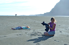 We were joined on our adventure by our friends the Dimayas and the Pearsons. Karekare is not far from Piha, along the rugged west coast, about 45 mins from Auckland. Karekare is located down a much narrow and windy road. There weren't as many people at the beach as there are at popular Piha, and the black sandy beach was much wider, allowing the kids to wander around and explore.